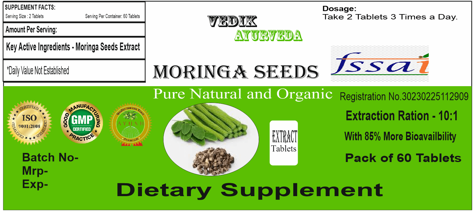 Vedik Ayurveda Moringa Seeds Extract Tablets Pack of 60 Tablets